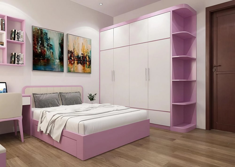 - Thiết kế hiện đại, trẻ trung: Màu hồng pastel nhẹ nhàng kết hợp với sắc trắng tinh tế, phù hợp với phong cách nội thất hiện đại và tối giản.