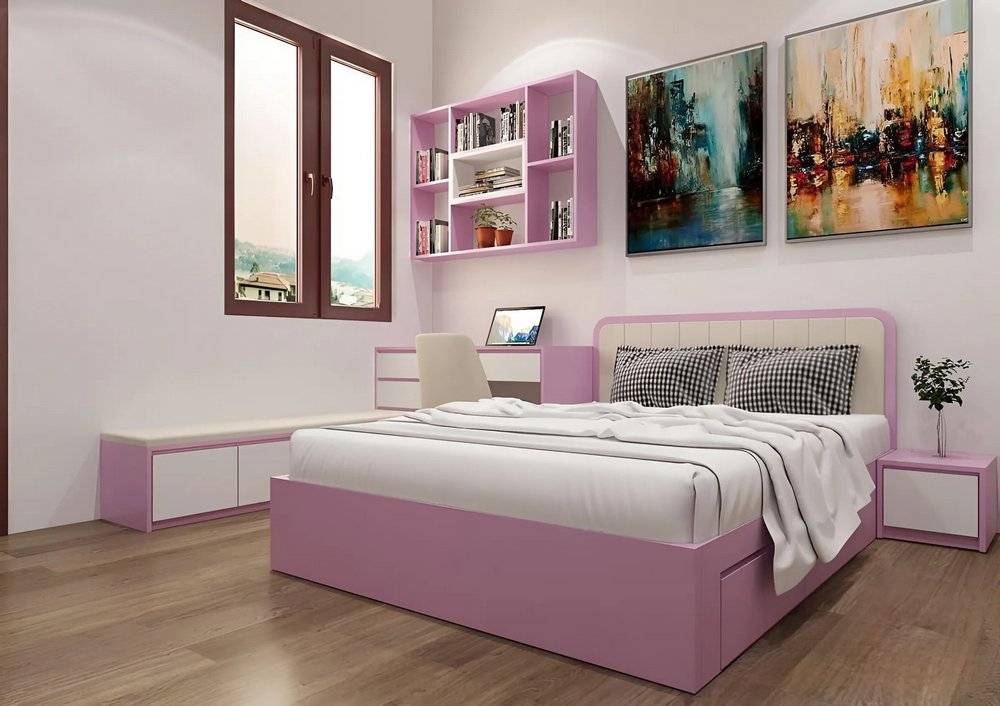 Đặc điểm nổi bật của giường ngủ nhựa Đài Loan màu hồng có ngăn kéo