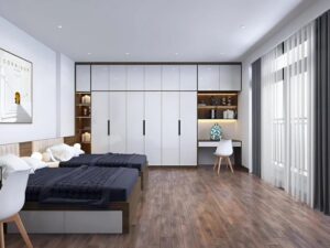 Mẫu nội thất phòng ngủ nhựa cao cấp 2 giường ngủ vân gỗ
