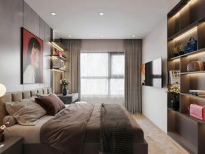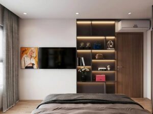 Hệ thống tủ quần áo, giường ngủ, bàn trang điểm và kệ trang trí được bố trí hợp lý, giúp tận dụng tối đa diện tích phòng ngủ. Đặc biệt, các mẫu giường nhựa tích hợp ngăn kéo hoặc tủ quần áo đa năng giúp tiết kiệm không gian, phù hợp với căn hộ chung cư hoặc nhà có diện tích nhỏ.