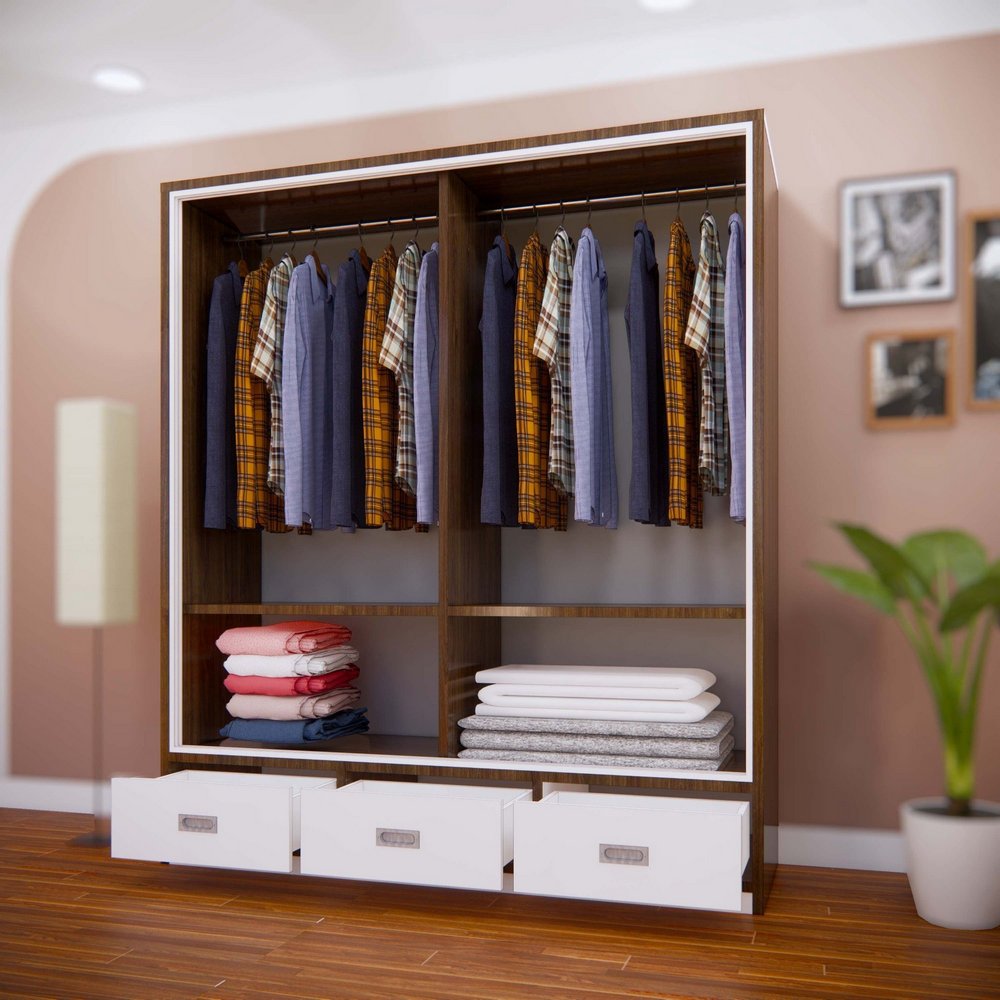 • 3 buồng treo quần áo rộng rãi, thanh treo inox chắc chắn
